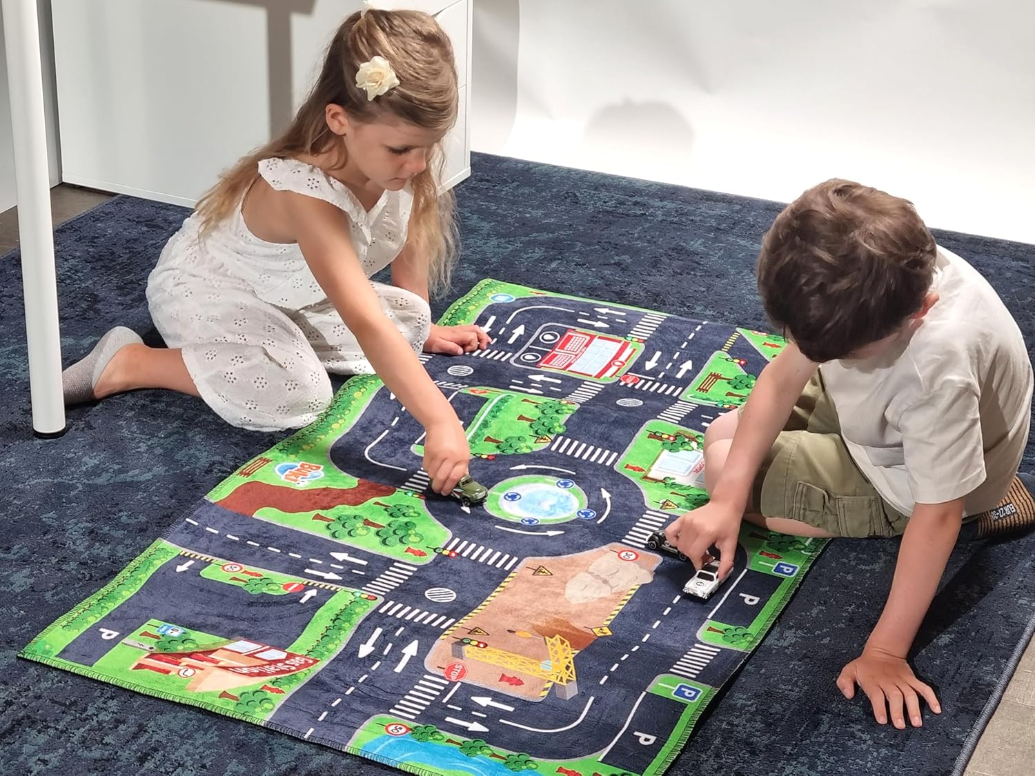 Меко килимче е с нехлъзгаща се повърхност, включва светлини, които светят и променят цвета си, учейки децата на правилата на пътя;