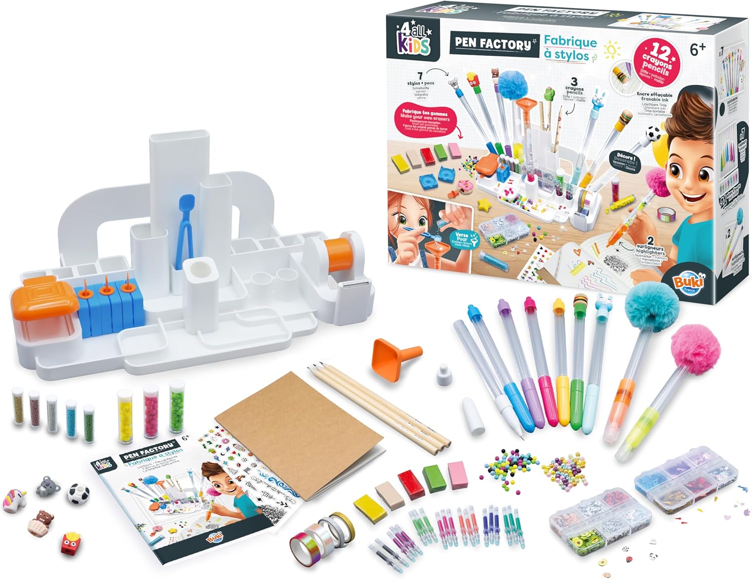 Съдържа: 7 химикалки, 21 пълнителя с изтриваемо мастило (7 различни цвята), 2 хайлайтъра, 3 молива, 1 тетрадка, 4 ролки тиксо, 1 лист стикери, 5 цвята глина за изтриване, 3 форми за изработка на гуми, 7 фигурки, 1 кутия пайети, 1 кутия цветна декорации, различни мъниста и декорации;