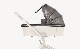 Въздухопропускливият сенник, изработен от плат, обогатен с UV филтър, предпазва бебето от пряка слънчева светлина и други външни фактори;