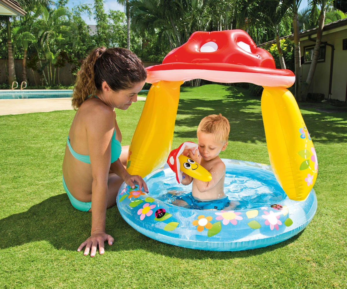 Оборудван е с гъбка, която играе ролята на сенник, предпазващ децата от преките слънчеви лъчи;
