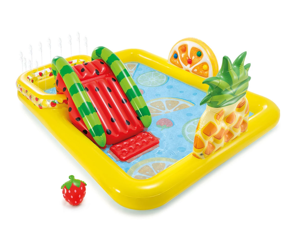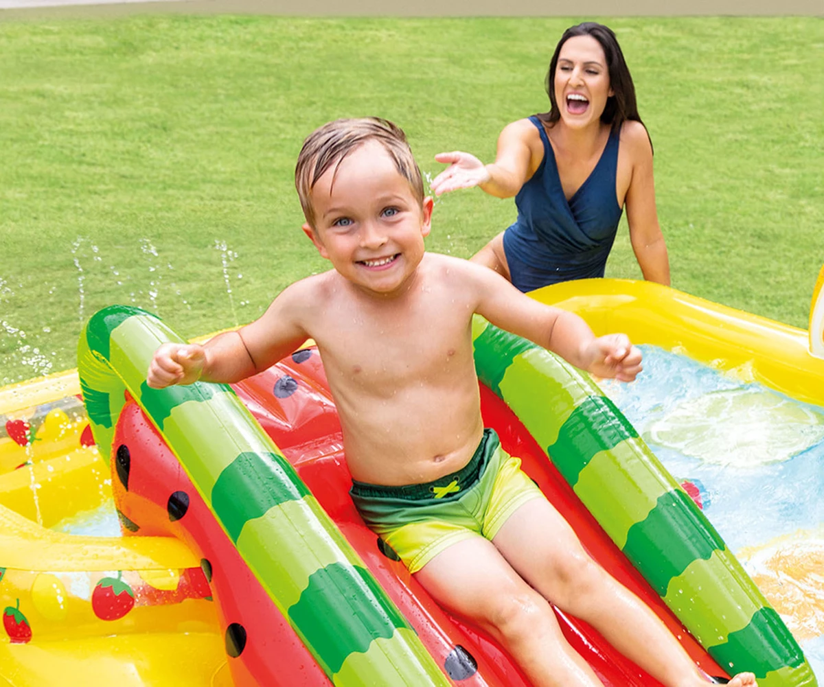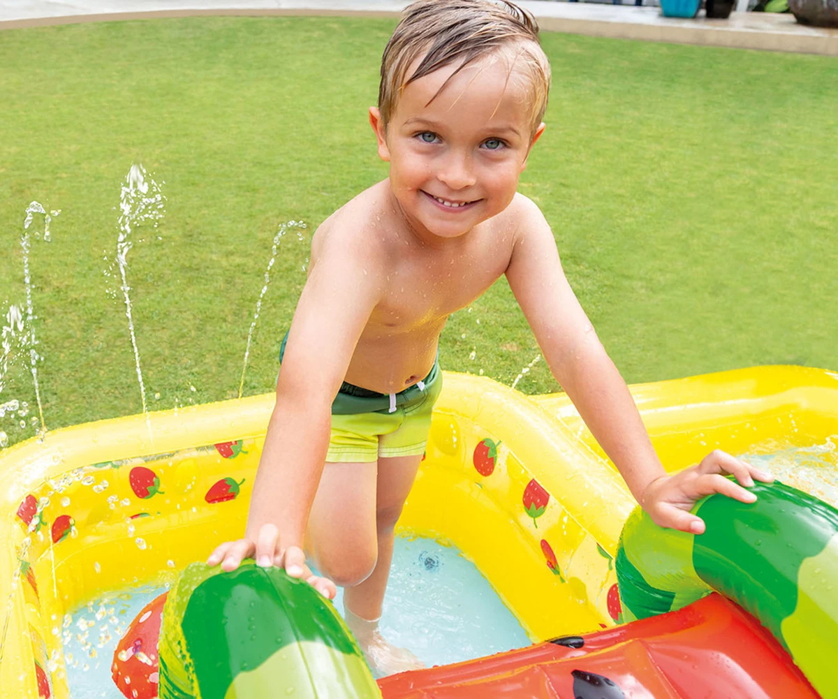 • Направете горещото лятото по-весело и прохладно с надуваемия център за игра INTEX Fun 'N Fruity Play Center;