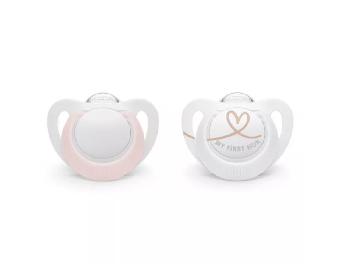 Силиконова залъгалка NUK Star, 0-6м, момиче, 2бр