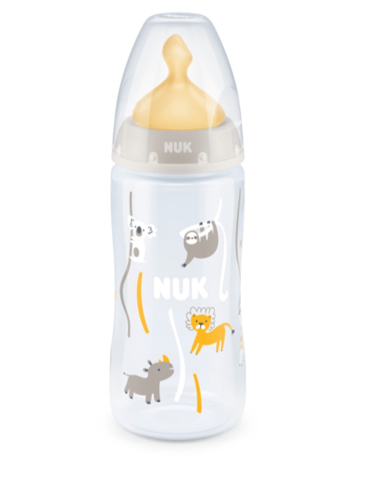 Шише Nuk First Choice 300 мл, каучуков биберон 0-6м, бежово