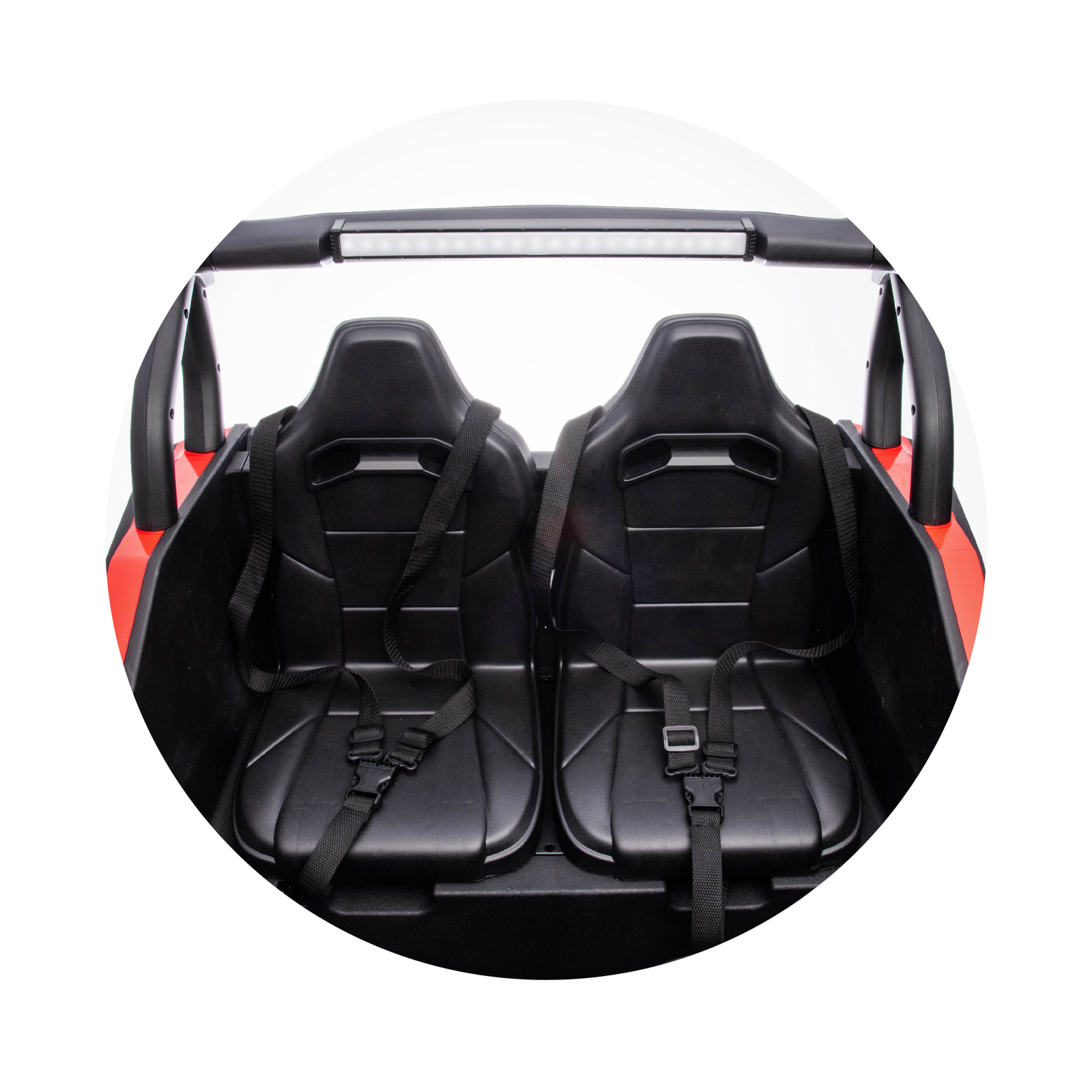 • Две широки седалки с предпазни колани – идеални за игра с приятел;