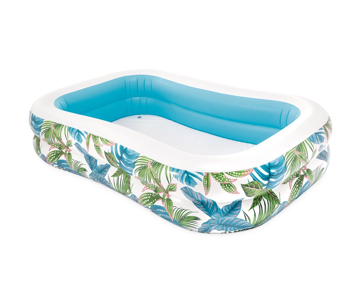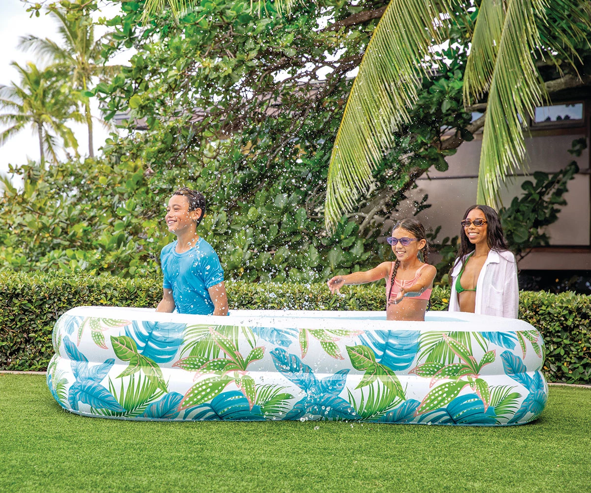 Съберете семейството си, за да победите жегата и да се насладите на освежаващо потапяне в този стилен басейн с тропическа тематика;