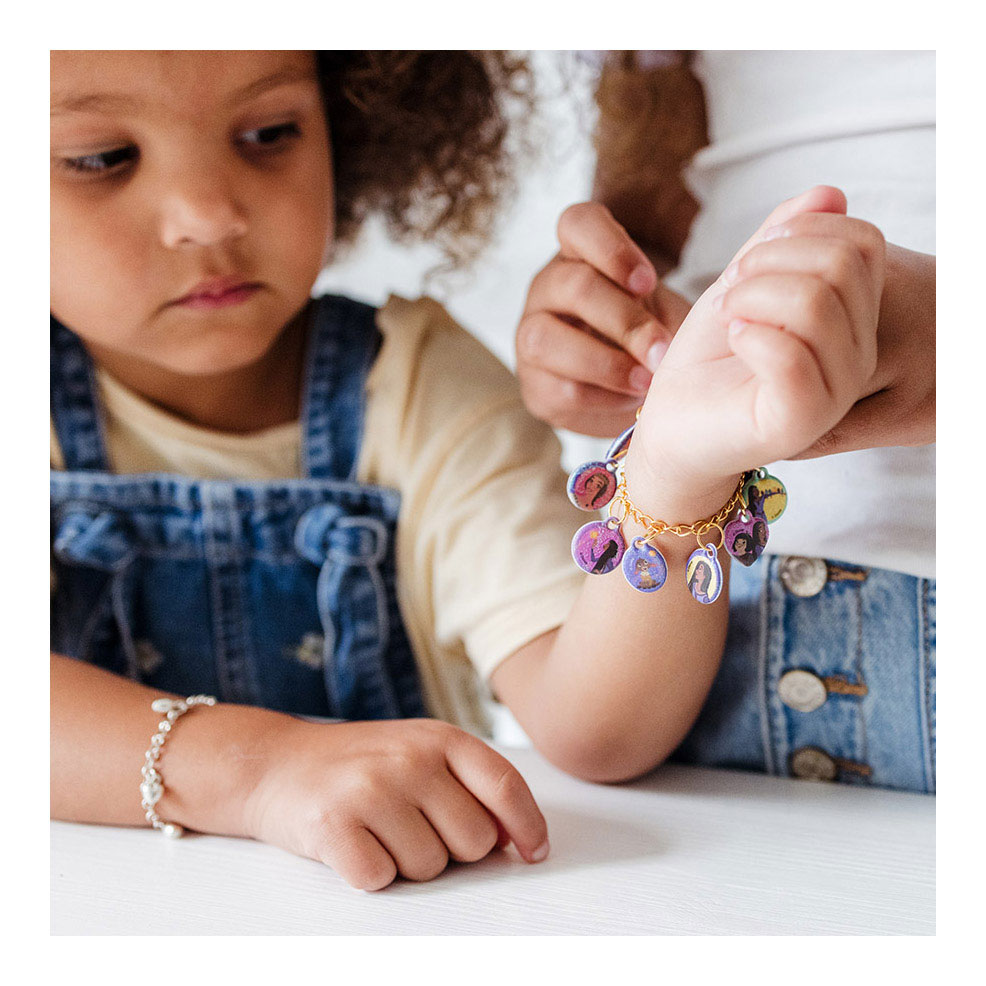 С този весел комплект бижута можете лесно да направите най-хубавите гривни в темата на последния филм на Дисни Wish с талисмани, направени от 3D релефни блестящи стикери;