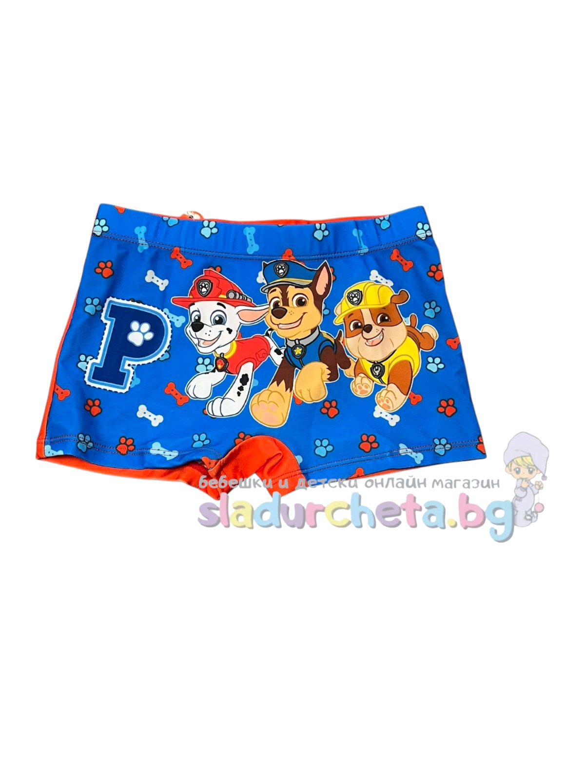 Банският е в син/ червен цвят с апликация на герои от Пес Патрул;