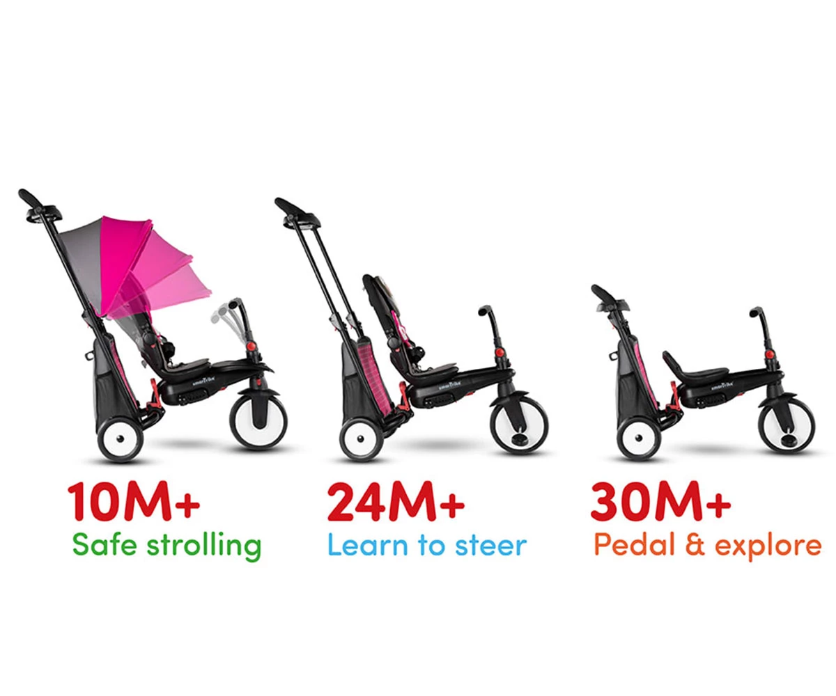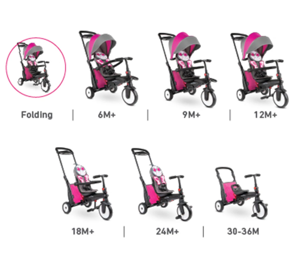 Етап 5 (18M +): Развива ценни умения. Премахнете сенника и гледайте как бебето изгражда баланс, любопитство и увереност, докато се наслаждава на забавно яздене и гледка с широко отворени очи;