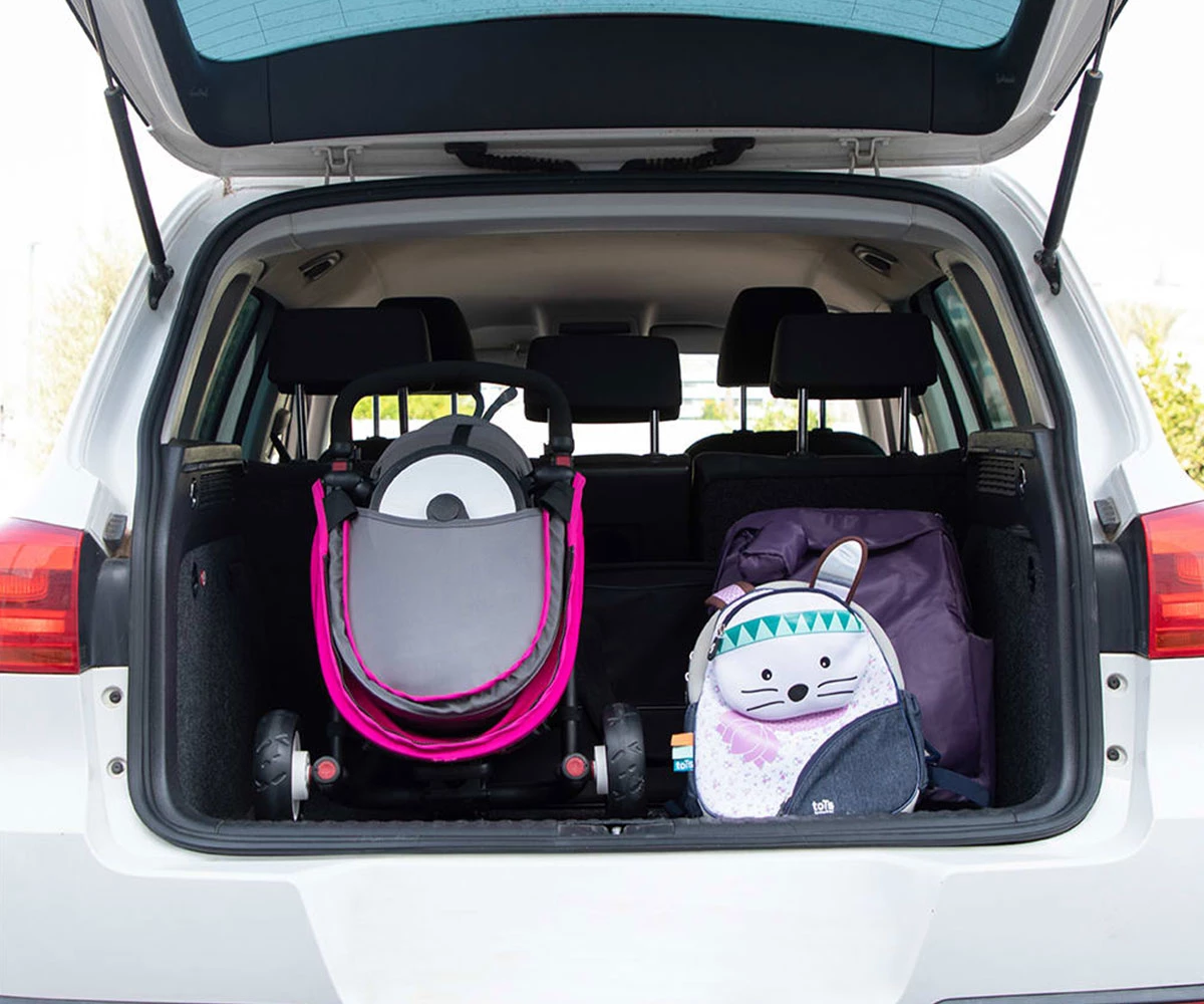 тап 1: Сгъва се компактно. Съхранява се удобно или може да обикаляте с разтегателната родителска дръжка за лесно возене;
