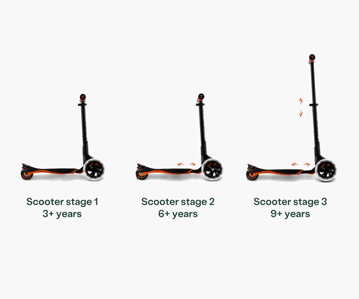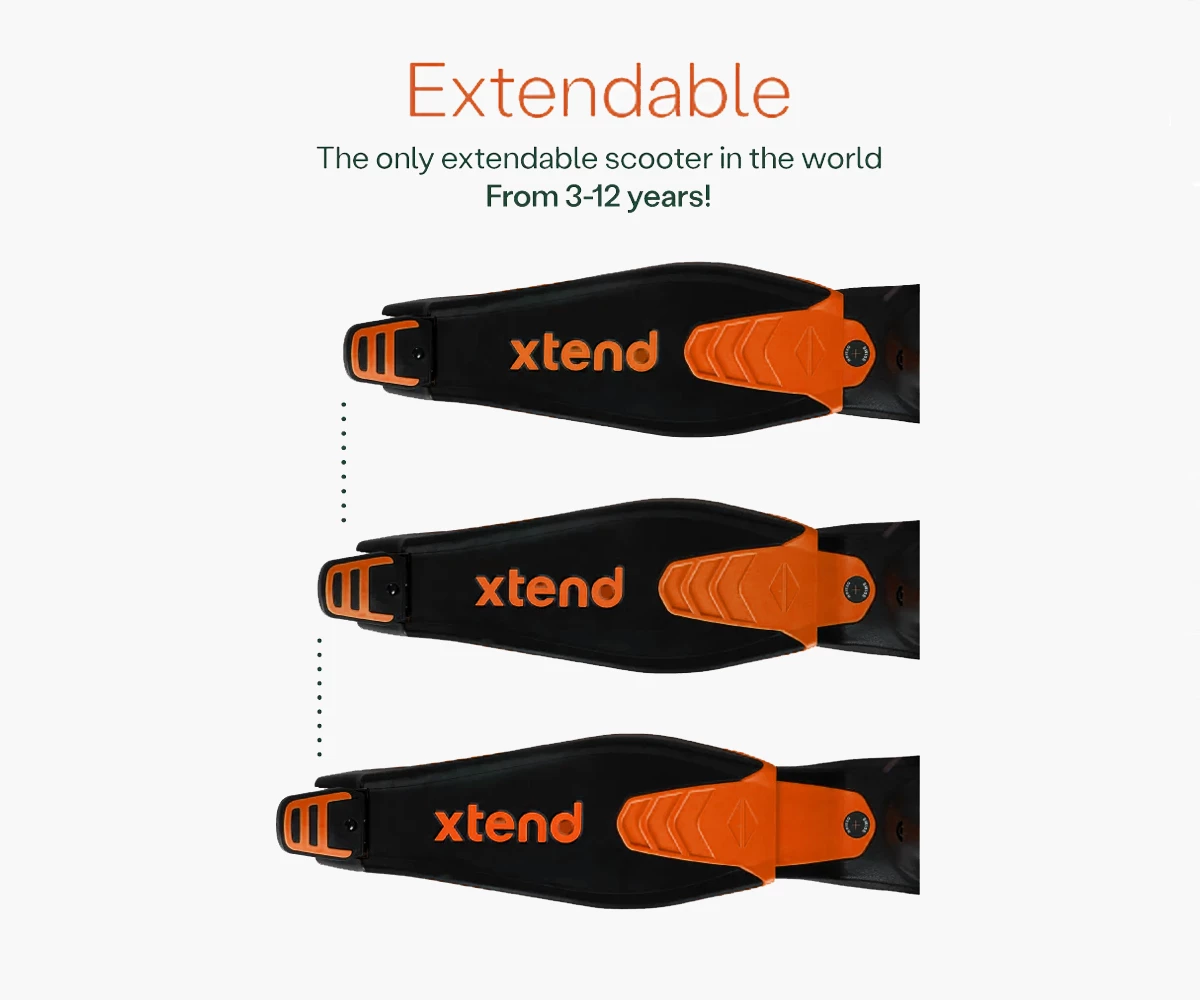 • 3-степенната дъска за крака на XtendScooter заедно с издръжливия дизайн му позволяват да придружава децата през цялото им детство;