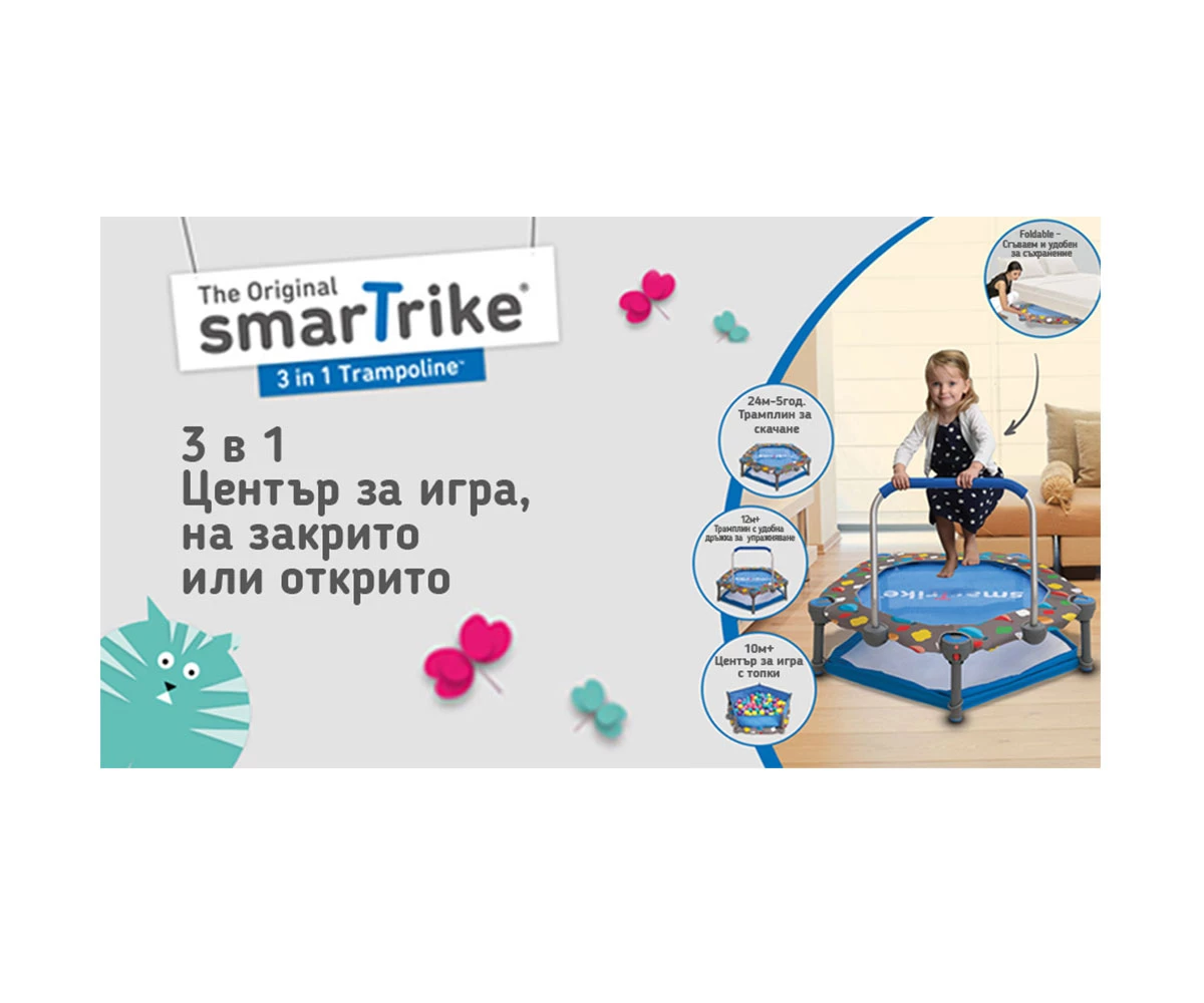 Бебешки и детски магазин "СЛАДУРЧЕТА" и марката "smarTrike" представят на Вашето внимание трамлин със следните характеристики: