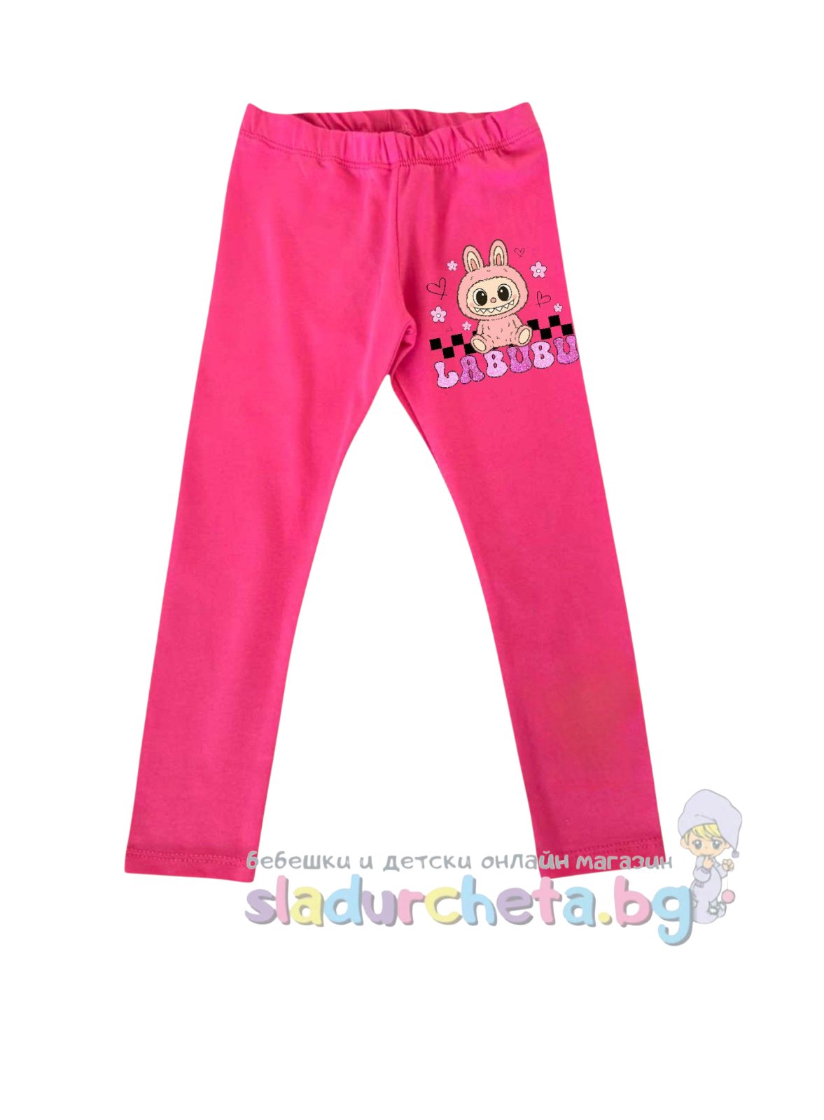 Клинът е в розов цвят с цветна апликация и ластична част на талията;