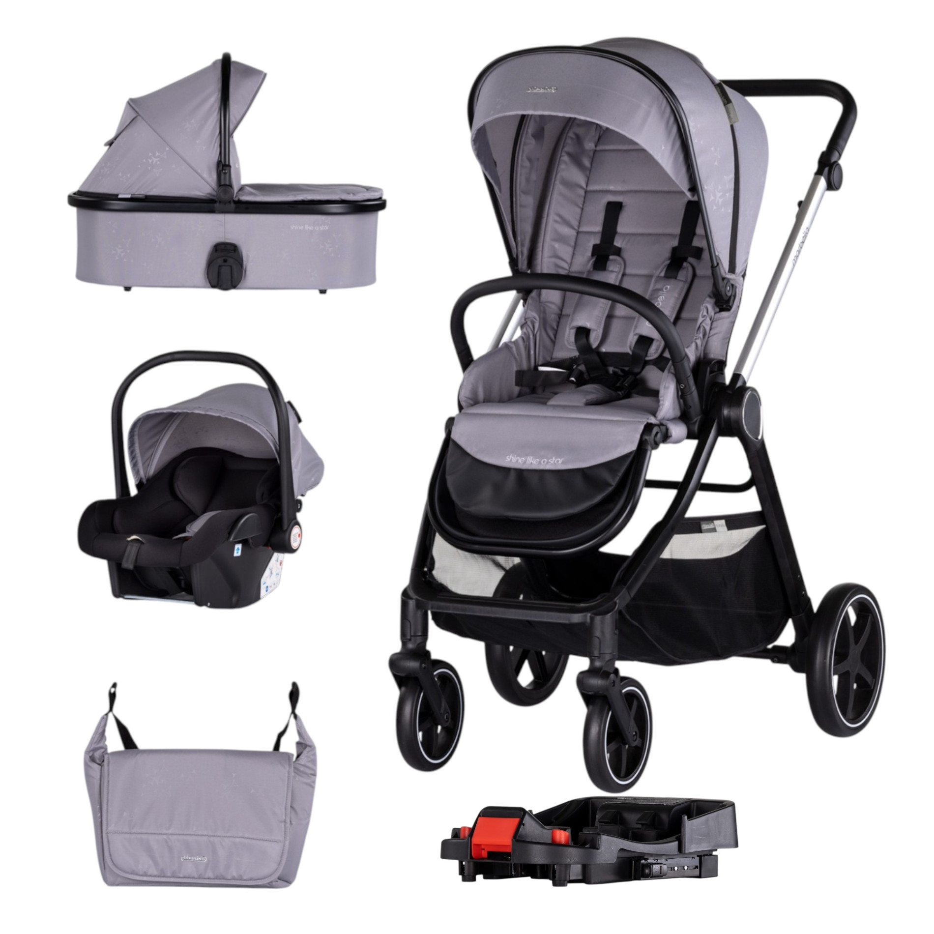 Съвместимо с рамата на количката, посредством адаптори, които са включени в комплекта;