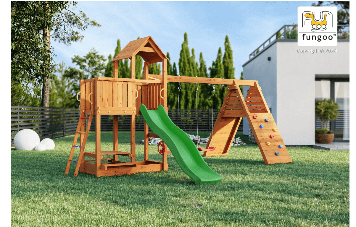 Детска площадка с пързалка и 2 люлки Fungoo Fluppi Double