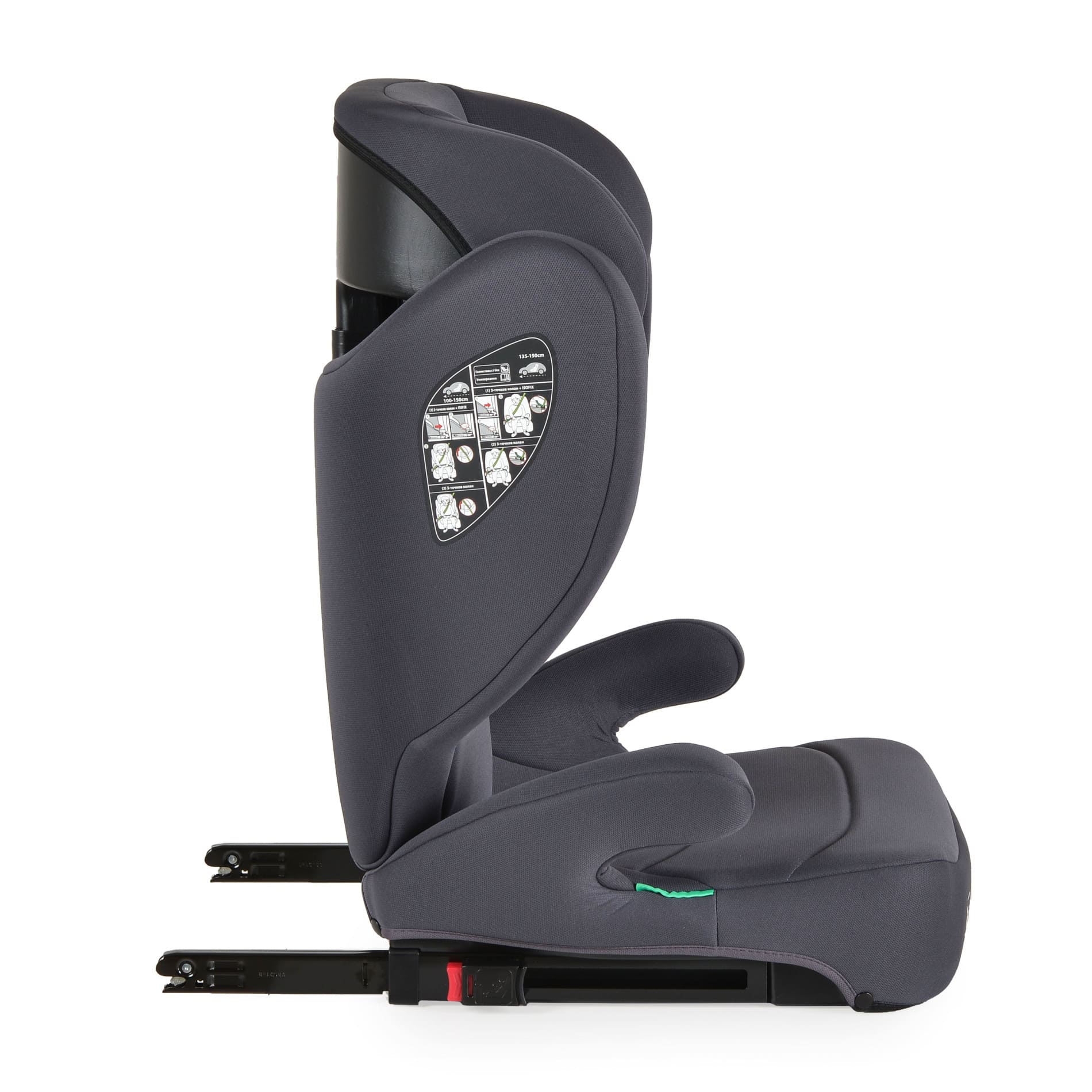• Стол с облегалка – за деца от 100 до 150 см, подходящ за монтаж с ISOFIX или с автомобилен колан;