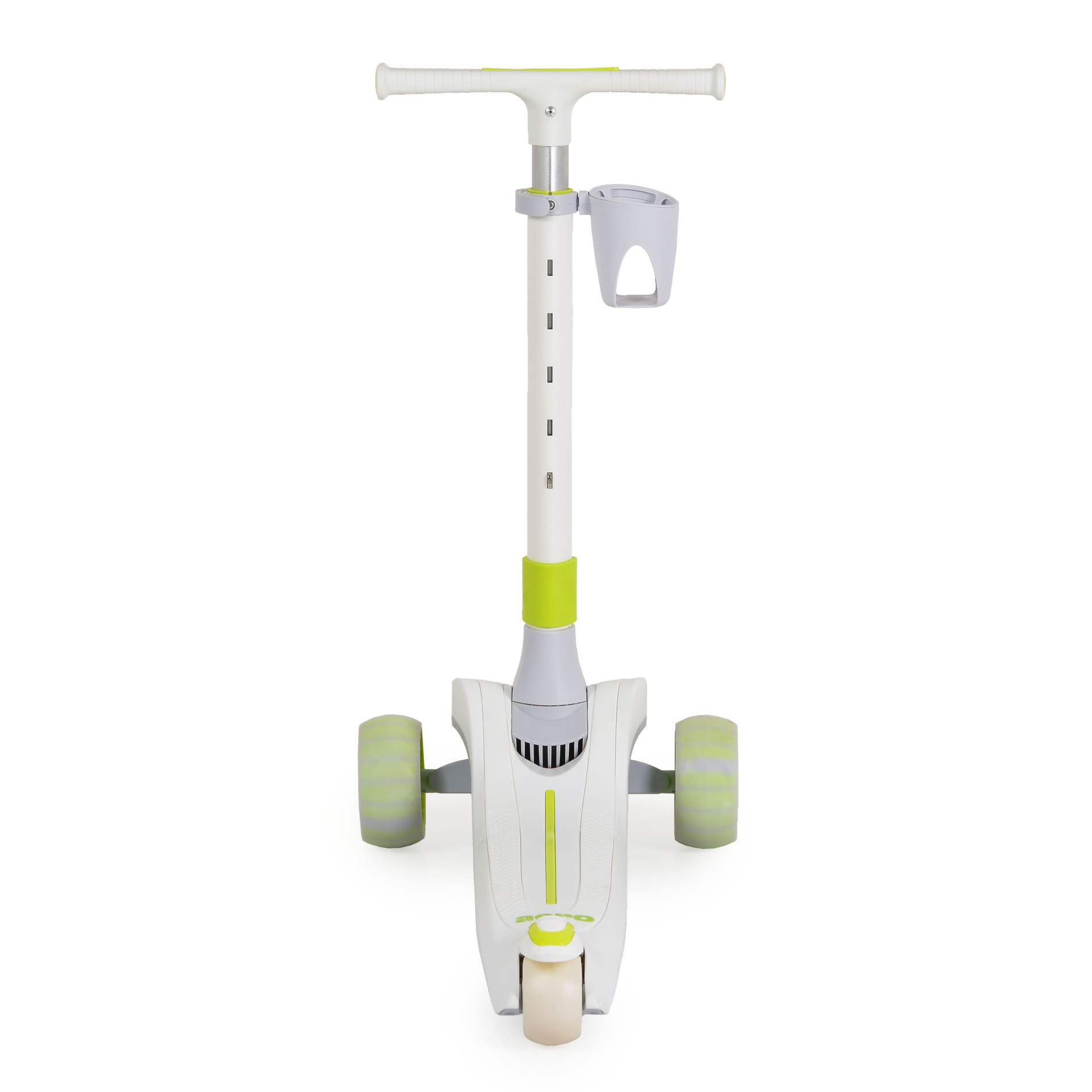 Вградени светлини без батерии – предната част и платформата светят в различни цветове, благодарение на динамо технология, захранвана от движението;