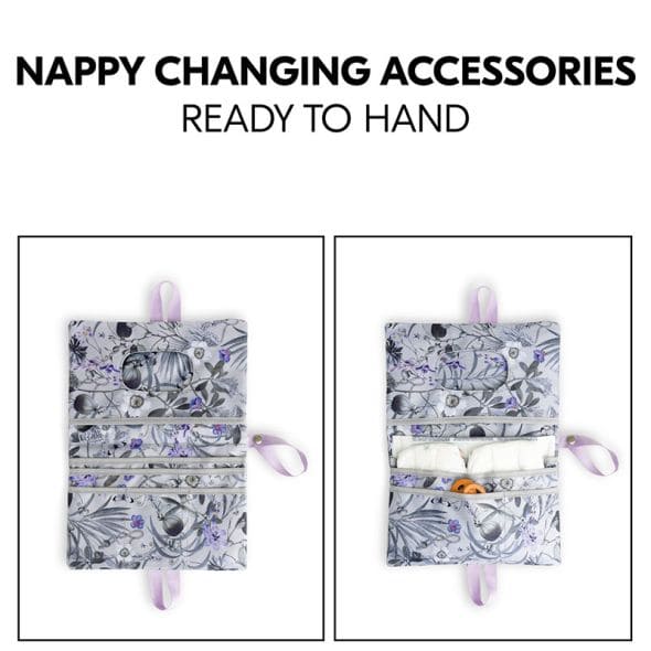 Малката чанта за пелени се предлага с практична подложка за повиване, която Ви позволява да сменяте пелените на Вашето бебе по хигиеничен и удобен начин по време на разходки, излети или пикници;