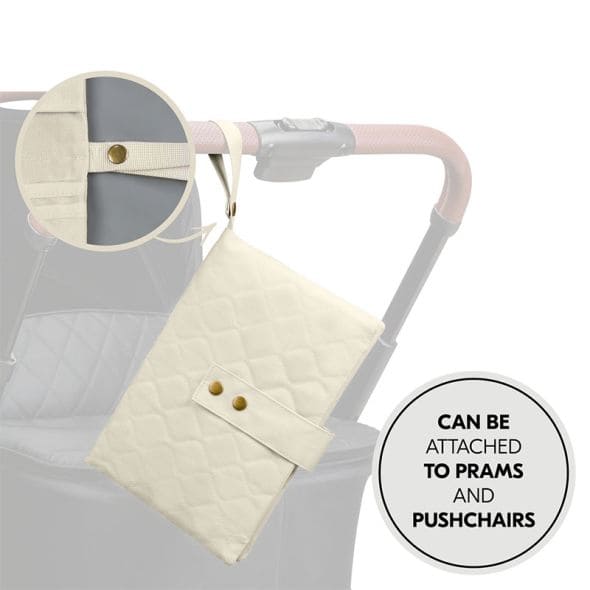 Благодарение на практичната лента с щипка, можете също да прикрепите чантата за пелени към дръжката на количката, за да е винаги под ръка;