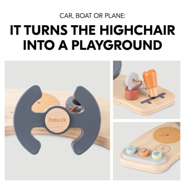 Децата обичат да се преструват, че шофират! Превърнете своето дървено столче за хранене Alpha+, Beta+ или Arketa (предлагат се отделно) в първото превозно средство на вашето дете с Play Cockpit;