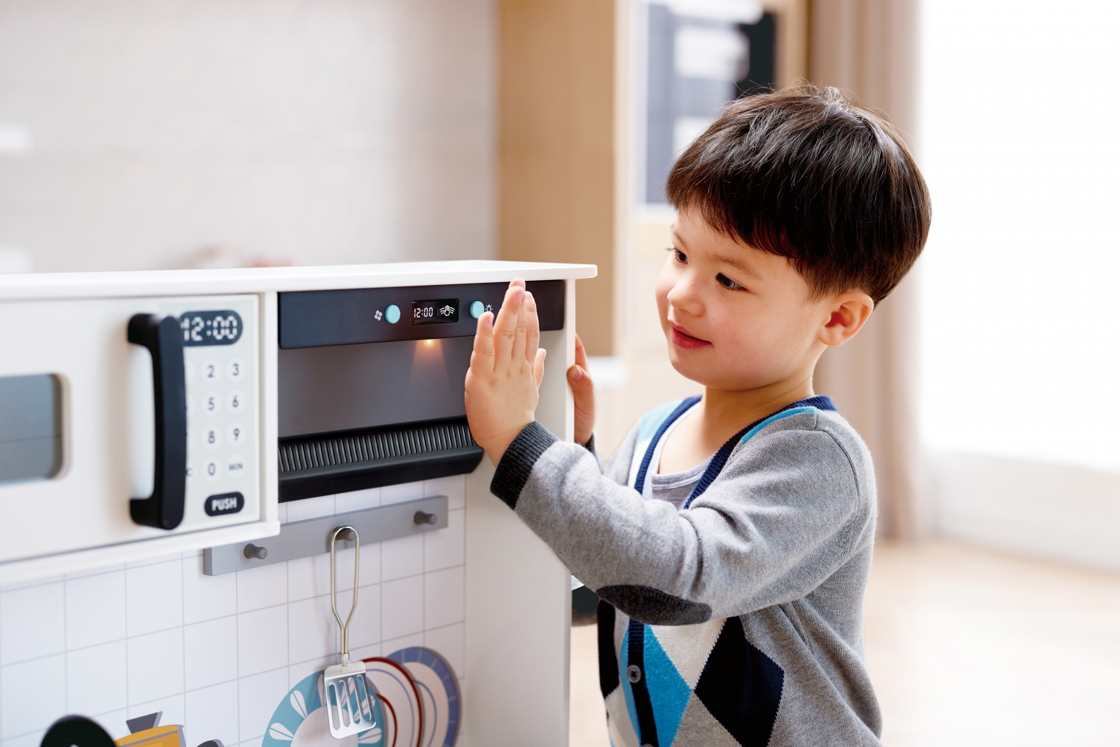 Децата развиват важни умения за комуникация и самообслужване чрез ангажиране с кухненския комплект;