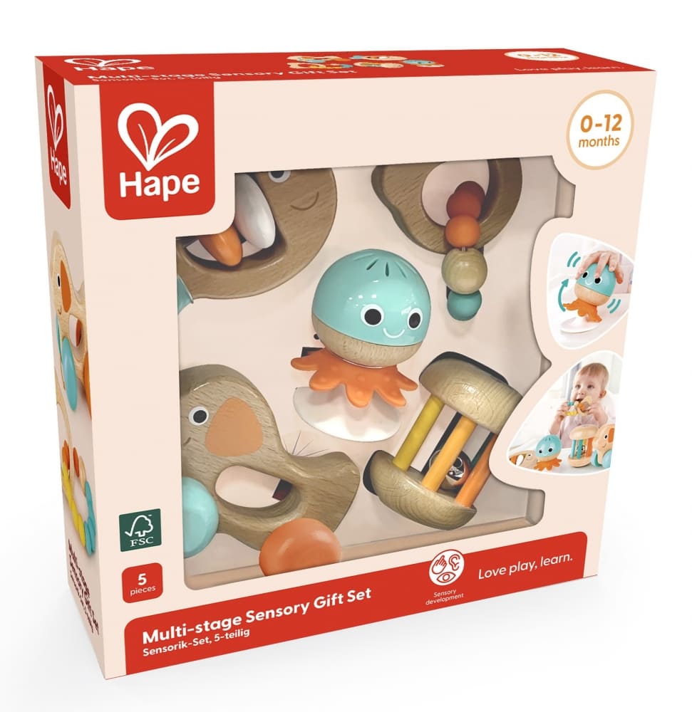 Този многоетапен сензорен подаръчен комплект има всичко, от което бебетата се нуждаят, за да са ангажирни, докато растат;