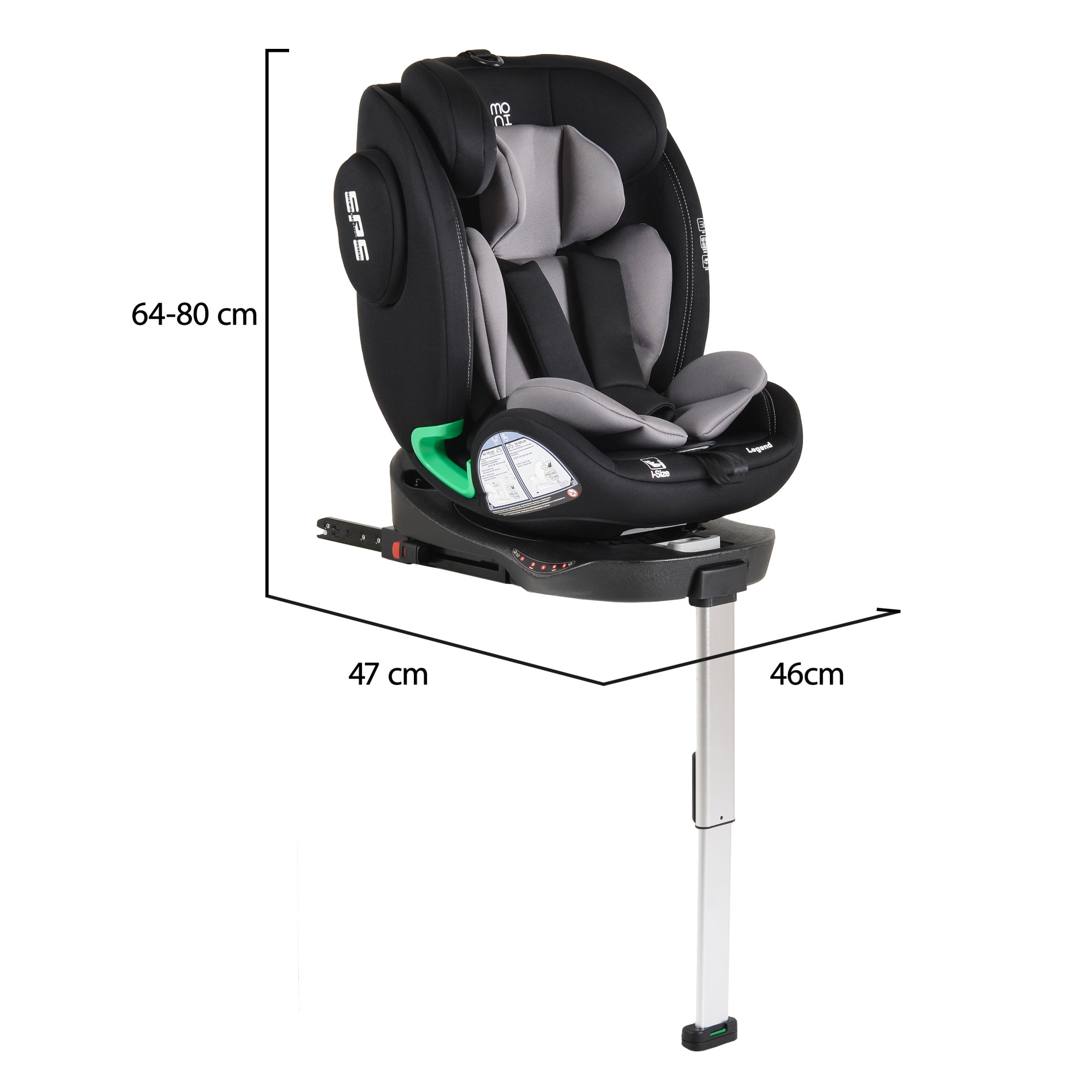 От 76 до 105 см – по посока на движението: използване с вградения 5-точков колан; монтаж чрез ISOFIX и опорен крак; регулиране на наклона и подглавника според нуждите на детето;