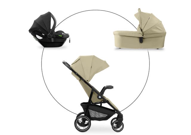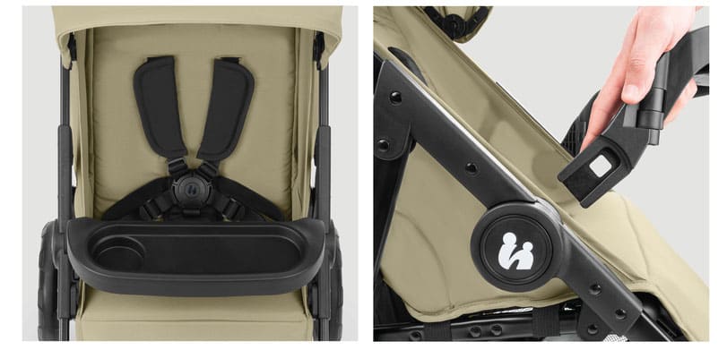 Съвместимо с рамата на количката, посредствам адаптори, които са включени в комплекта;