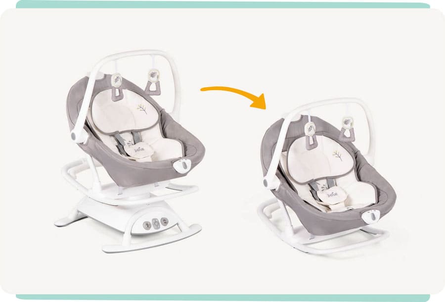 • Отделящата се седалка служи и като компактна, преносима люлка, когато се използва без основата;