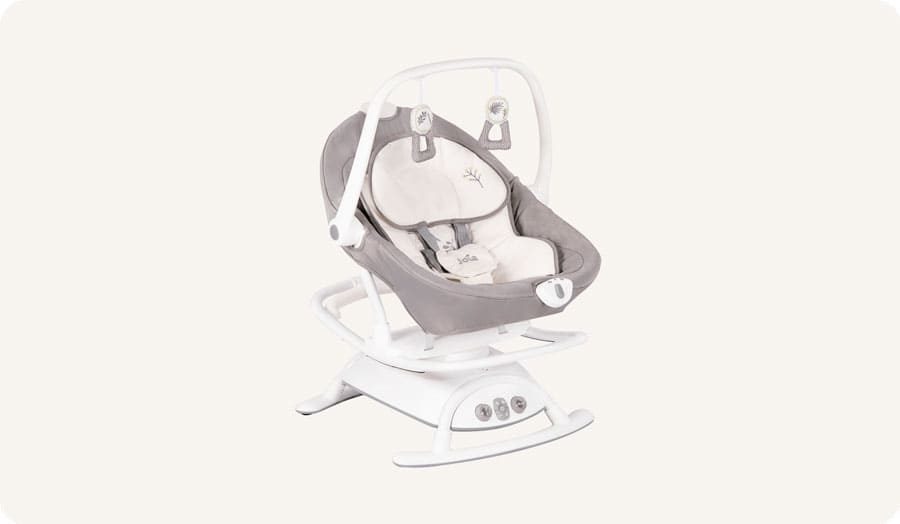 • Седалката се завърта на 90° върху основата, за да промени посоката на всички движения за персонализирано успокояване;