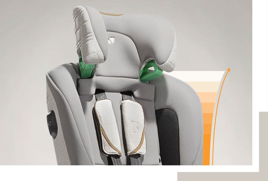 Grow Together™ система за регулиране на облегалката за глава и коланите с 9 позиции, която се настройва с една ръка – дори когато столчето е монтирано;