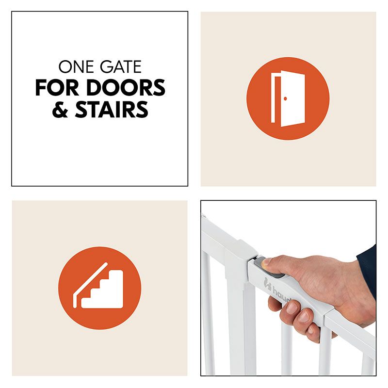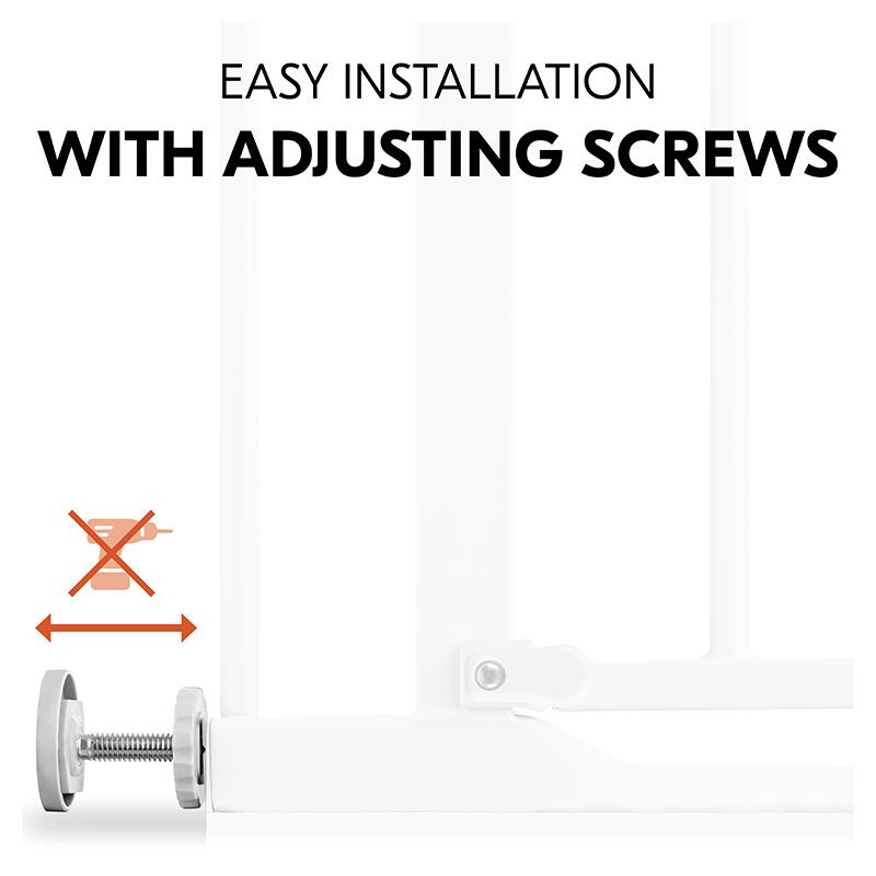 • С удължители от 9 см и 21 см можете да удължите предпазната врата до 122 см и да я използвате за множество стълбища и врати, които нямат стандартни размери;
