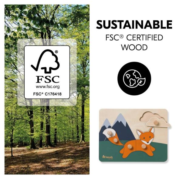• Играчката е изработена от FSC®-сертифицирана дървесина, което гарантира нейната дълготрайност и олицетворява екологичното и устойчиво горско стопанство и защитава растенията и животните;