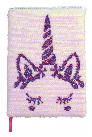 Блестяща тетрадка с пайети и красив мотив еднорог;