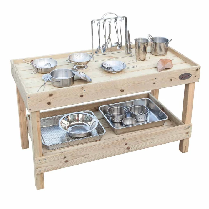 Освен това моделът може да се превърне в едно чудесно допълнение към дървената кухня и мивката за игри на открито;