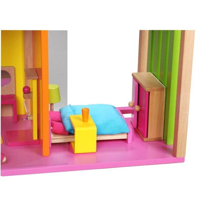 Изработена от най-естествения материал - дървото, тази къщичка е здрава, стабилна и най-вече с атрактивна съвременна визия, оборудвана с всичко, с което трябва да разполага един приказен дом - басейн, гараж, градина и голям брой стаи, в които има място за много обитатели;