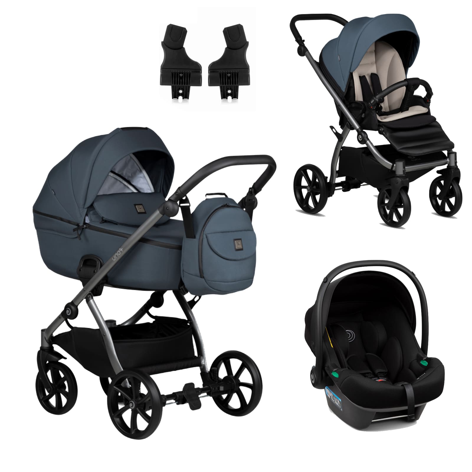 Съвместимо с рамата на количката, посредством адаптори, които са включени в комплекта;
