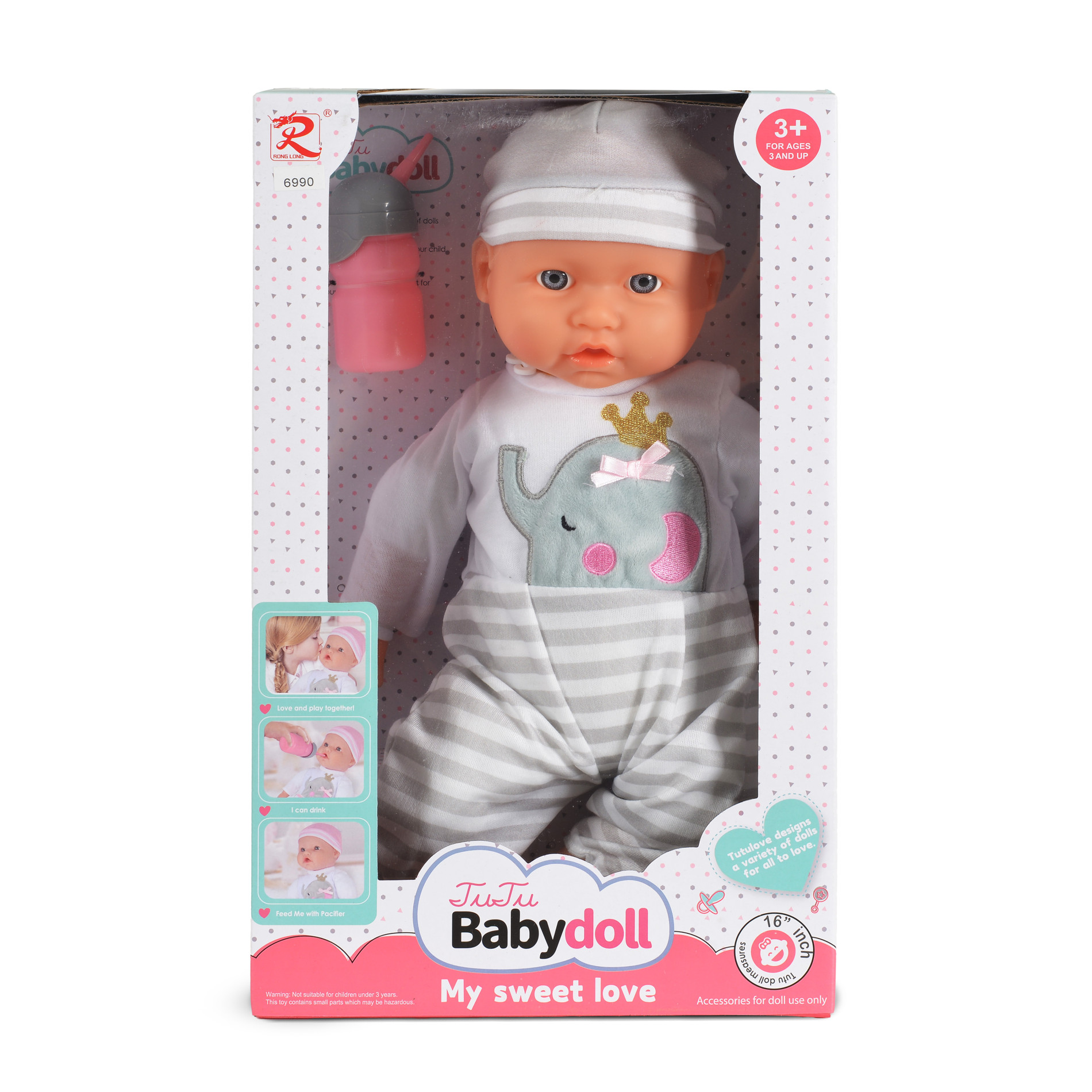 Комплектът включва шише-биберон, с което детето може да „храни“ бебето по време на игра;