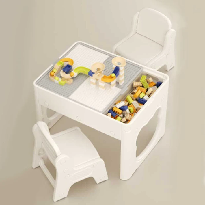 Детска маса 2 в 1 Feelkids, с конструктор 100 части и два стола