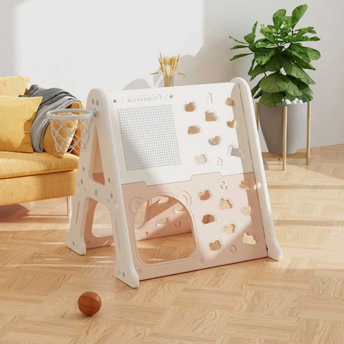 • Комплектът съдържа стена за изкачване, дъска за редене на конструктор, дъска за рисуване и баскетболен кош – всичко необходимо за часове активна и забавна игра;