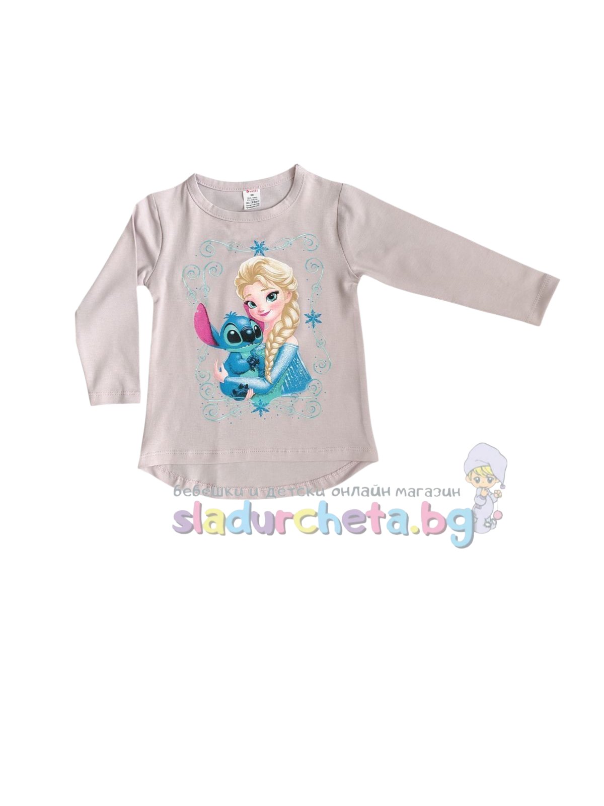 Блузата е с дълъг ръкав с цветна апликация на Елза;