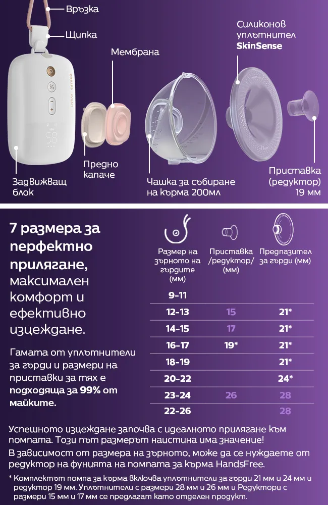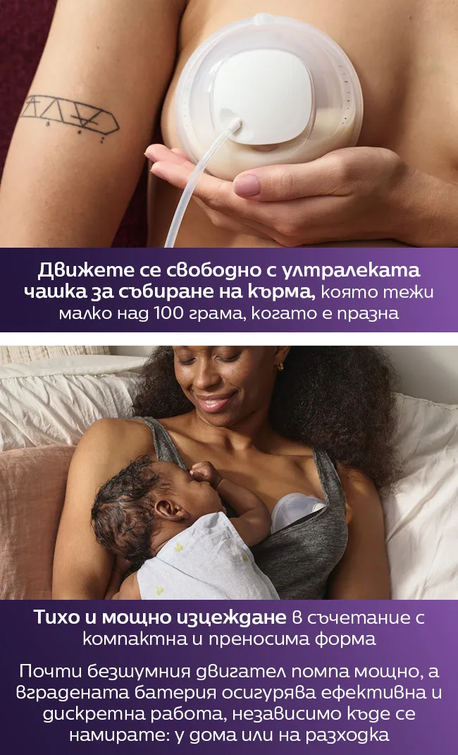 • Настройки за персонализиране: 8 степени на засмукване в режим на стимулация и 16 степени на засмукване в режим на изцеждане;