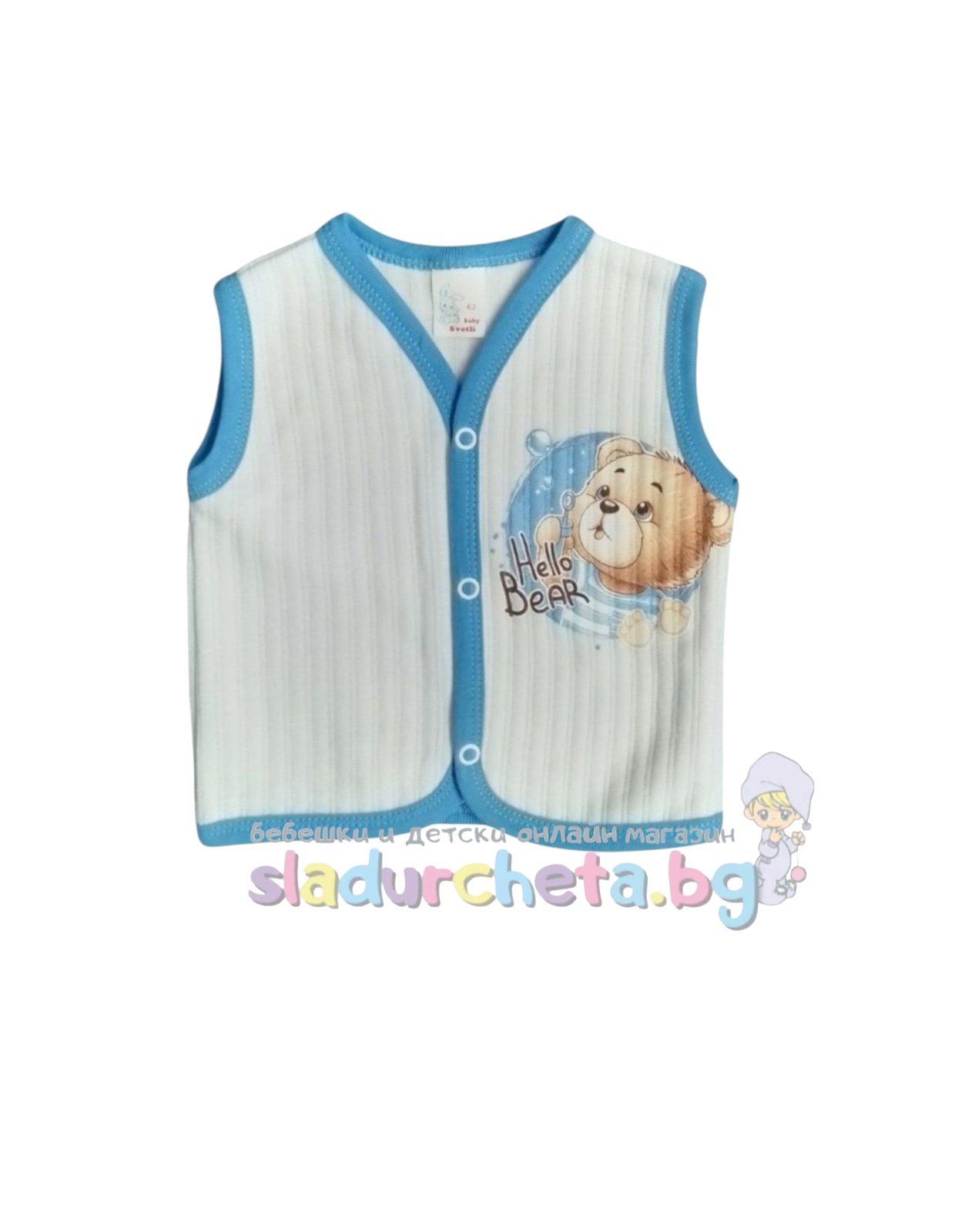 Бебешки и детски магазин "СЛАДУРЧЕТА" и марката "Sevtex" представят на Вашето внимание бебешки елек със следните характеристики: