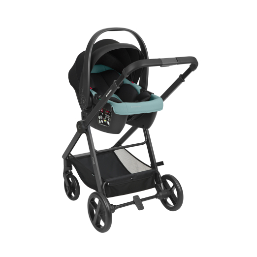 Съвместимо с рамата на количката, посредством адаптори, които са включени в комплекта;