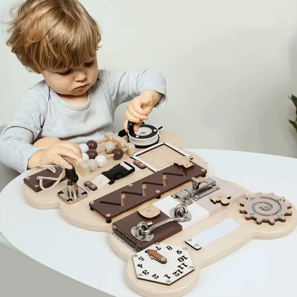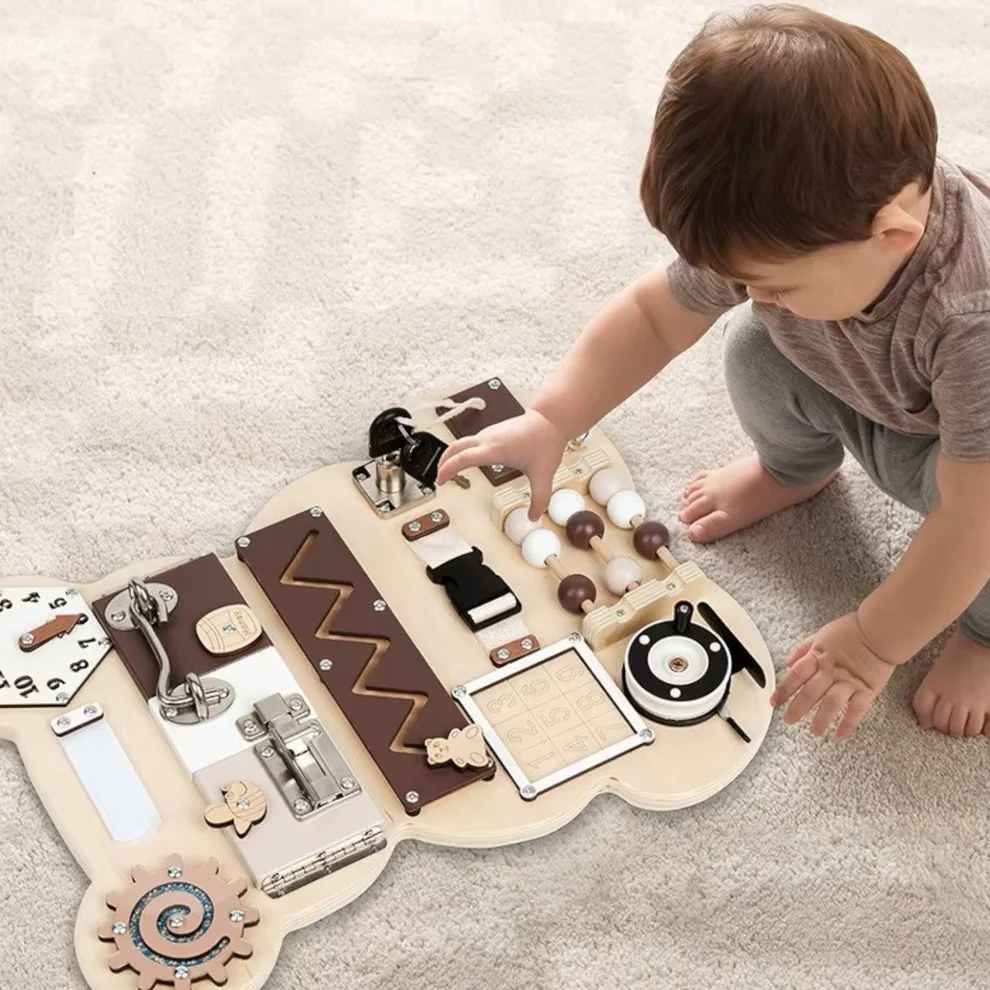 Множество активности: зъбни колела, катарами, ключалки, въртележки, часовник, сметало;