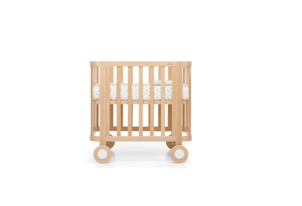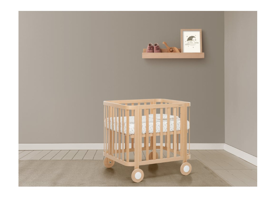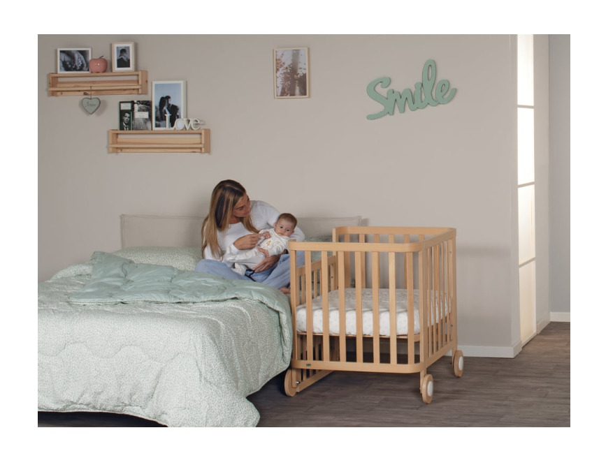 Детското креватче е просторно дървено креватче с уникален дизайн, разработено за използване от раждането и може да се постави и до леглото на родителите;