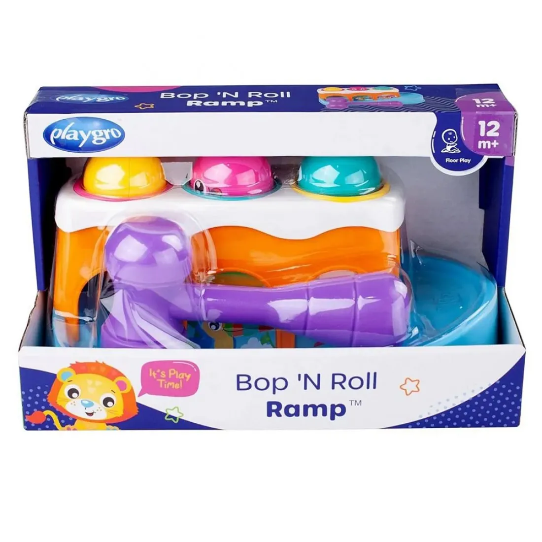 Удрянето и пускането на топките да се търкалят по рампата ще учи детенцето за причинно-следствените връзки;