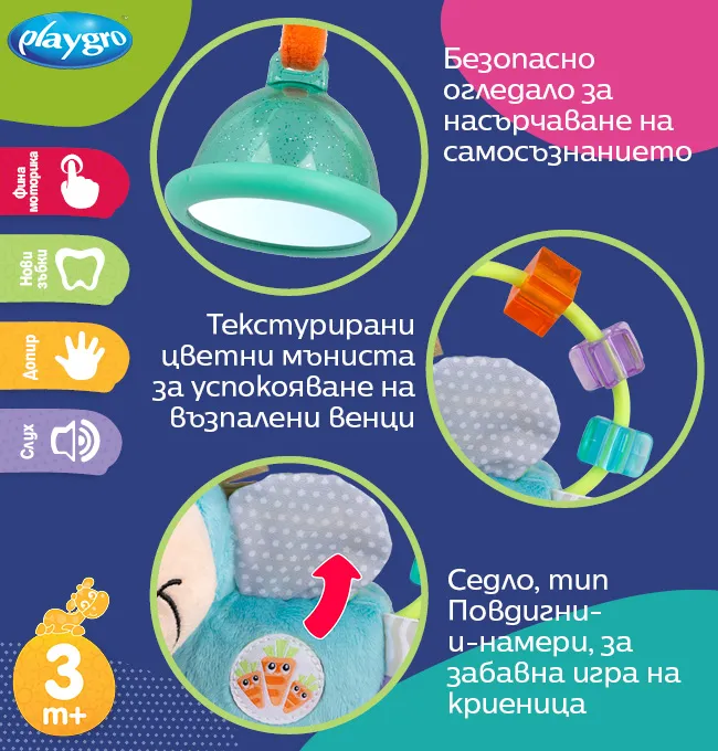 Бебешки и детски магазин "СЛАДУРЧЕТА" и марката "Playgro" представят на Вашето внимание дрънкалка със следните характеристики: