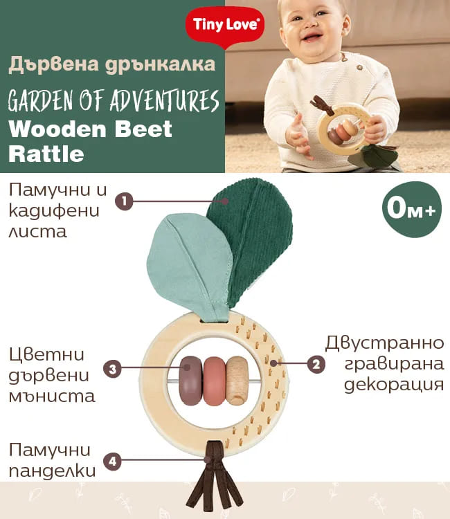 Бебешки и детски магазин "СЛАДУРЧЕТА" и марката "Tiny Love" представят на Вашето внимание дрънкалка със следните характеристики: