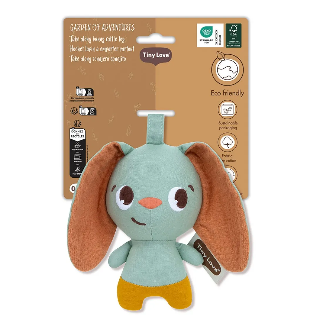 Играчката е изработена от естествен памук и пълнеж от рециклиран полиестер, със сертификат за OEKO-TEX® STANDART 100, гаранция за 100% безвредни за здравето и природата материали;