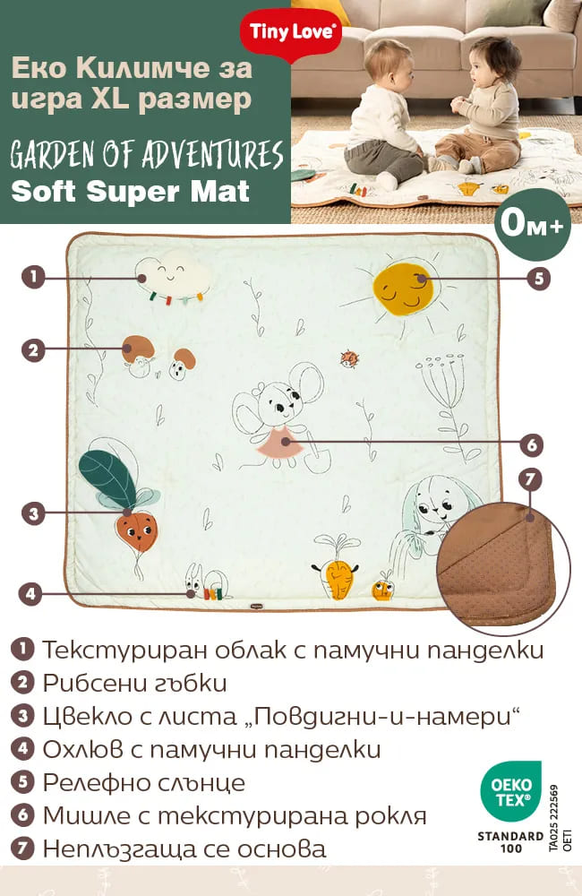 Бебешки и детски магазин "СЛАДУРЧЕТА" и марката "Tiny Love" представят на Вашето внимание килимче със следните характеристики: